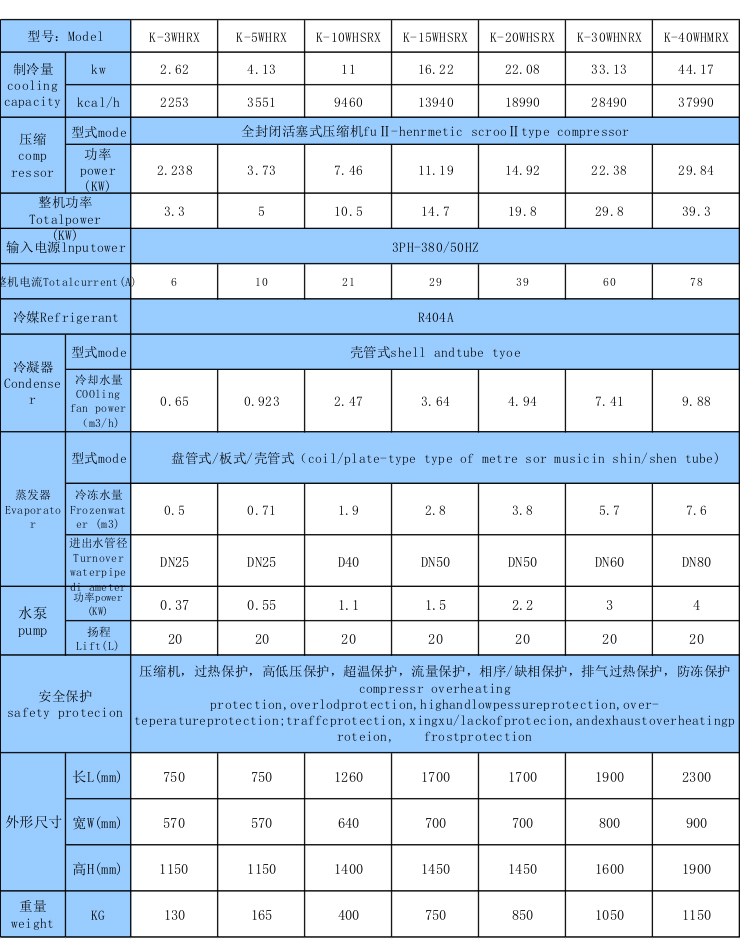 二.低溫型反應釜冷水機參數