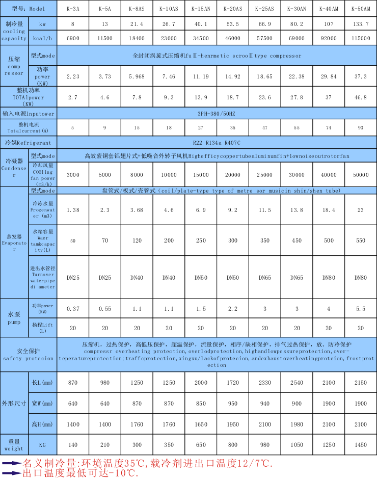 8.水冷及風冷式規(guī)格齊全(功率:3HP-300HP,制冷量從600W至34800W)專門設有各行業(yè)機械設備配套之機型,可按客戶工藝要求制造。